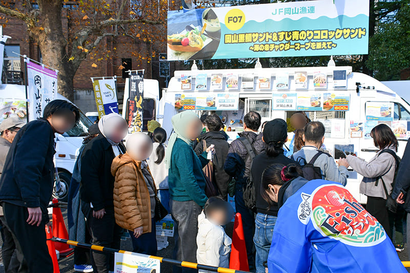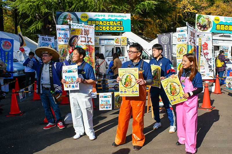 10時のオープンと同時にぞくぞくとお客様が入場。各ブース前に並ぶ方々からは「毎回来てるんだよね~!」といううれしいお声もちらほら聞こえてきました。会場周辺に漂うおいしそうなお魚料理の匂いに思わず胃袋が「ぐぅ~」と反応してしまいそう。隣接する他のイベント会場からも「いい匂い~」と多くの方が訪れてくださいました。オープン早々からの賑わいっぷりは、11回を数えるFish-1グランプリが定着してきた証拠ではないでしょうか。