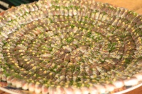まき網漁船を市場岸壁に横付けし、新鮮な瀬付きあじを浜値で販売するコーナーには開始前から大行列!直径1mの大皿に瀬付きあじ握り寿司500カンを盛り付け無料試食提供するコーナーも大人気でした。さらに瀬付きあじ一夜干しの炭火焼きも、先着300名様に無料で振舞われました。ちびっこたちには瀬付きあじの引っ掛け獲りが人気を集めたほか、会場内には萩の瀬付きあじを使った惣菜や加工品の出店も。道の駅レストランでは、当日限定の瀬付きあじスペシャルメニューの提供が行われるなど、丸一日「萩の瀬付きあじ」尽くしのイベントとなりました。