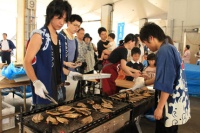 2014年7月6日(日)、山口県漁協萩地方卸売市場&道の駅/萩しーまーとを会場に、毎年恒例の人気イベント「第12回萩の瀬つきあじ祭り」が開催されました。地元自慢の瀬付きあじは、その名の通り瀬に居つき、豊富で良質なエサを食べて脂がのった肉厚なあじ。あいにくの雨模様にもかかわらず、県内外から1万人を越えるお客様が来場され、大盛況となりました。