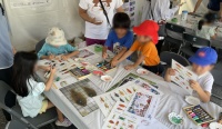 今回、JF沖縄漁連は飲食ブースと体験ブースで出展し、来場者に沖縄の魅力と水産への親しみを持ってもらう活動を展開しました。飲食ブースでは、伝統料理である「イカスミ汁」「もずく天ぷら」「じゅーしー」を販売しました。イカスミ汁は名前の通り真っ黒な見た目ですが、イカ墨特有の旨味がたっぷりと感じられ、具材に使われたプライドフィッシュ「せーいか(ソデイカ)」の身と軟骨はまるで鶏肉の様な食感でした。また本州ではもずく=三杯酢のイメージが強いですが、沖縄では天ぷらや汁物に入れたりして食べます。体験ブースでは、貝殻利用研究会協力の下、ホタテガイの殻に絵を描く貝殻お絵描き体験を実施しました。参加した子供たちは貝殻に思い思いの絵を描き、楽しんでいました。用意した約300枚の貝殻が無くなるほどの大盛況でした。