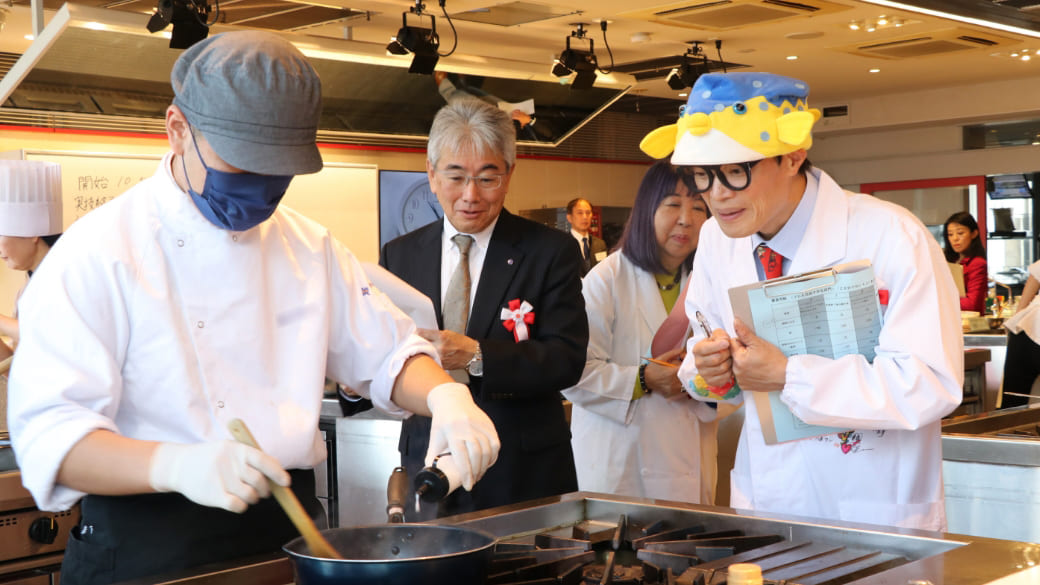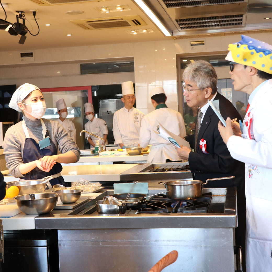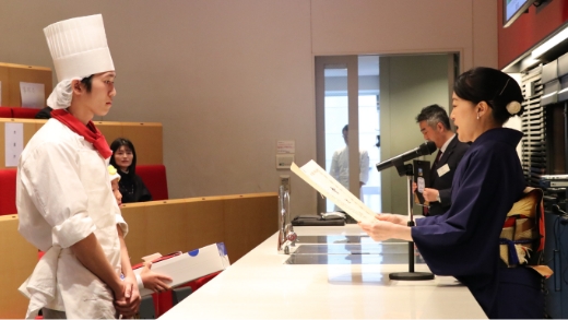 ここに集まったのは、100倍以上の倍率を勝ち抜いてきてきた方々。自分に誇りをもって、そしてこれからも年齢に関係なく、お料理を通して多くの人たちに喜びを与えてください。料理は、自分も楽しみ、喜びを得て、人々にも楽しみと幸せを与えるもの。多くの人に幸せを与えていただきたい。」