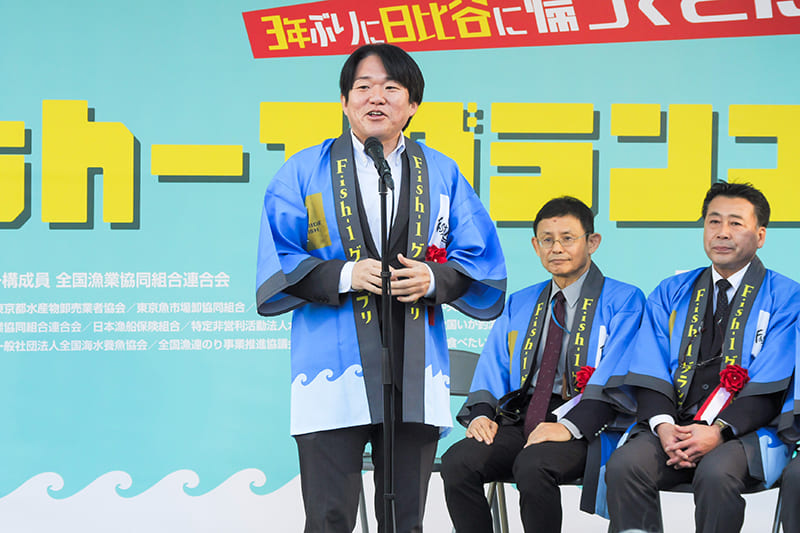 今年は第11回をむかえ、3年ぶりに日比谷公園での開催となりました。魚食普及拡大への歩みを止めずに毎年開催してこられたのは、ひとえに国内外のお魚ファン、漁業関係者の皆さまのおかげです。本イベントを通して今年も一人でも多くの方が魚料理のおいしさや水産資源の大切さ、漁業関係者の方々の努力を知ってくださったなら、これほど喜ばしいことはありません。今後もFish-1グランプリでは、島国日本の宝である魚の魅力を発信してまいります。