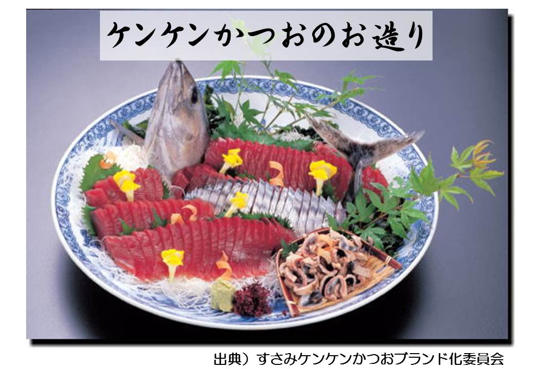 黒潮に面する紀南地方沿岸では、春先に黒潮にのって北上するカツオを、地元で「ケンケン漁」と言われる引き縄釣り漁により、1本ずつカツオを釣りあげます。釣上げた後、直ちに活け締め・氷温保存し、その日のうちに市場へ水揚げされるため鮮度が抜群です。特に、刺身やたたきが絶品で、いきの良いモチモチとした食感はたまりません!地元で春の訪れを告げる魚として古くから愛されています。