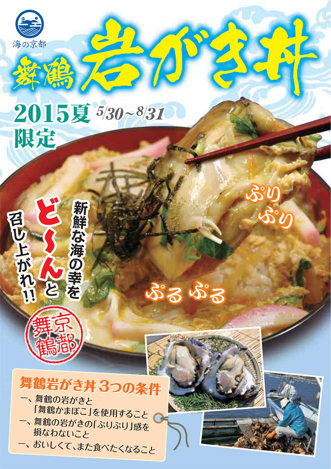 舞鶴では地産地消と地域おこしのため、舞鶴かきグルメキャンペーン協議会を設立し、丹後の海育成岩がきと舞鶴かまぼこがコラボした「舞鶴岩がき丼」を開発。提供する店舗を示したMAPを配布するなどPRを行っています。