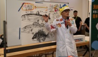 最後に、さかなクンへの質問タイムがあり、魚や環境についてみんなの疑問に、さかなクンがイラストを描きながら答えていました。