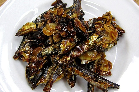 (1)いりこは170℃の油でカラッと揚げます。