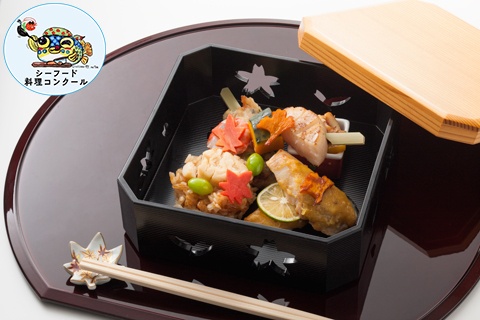 北海道の魚を使い、オレンジ色を取り入れて北海道の秋を盛り込んだお弁当です。幅広い世代に楽しんでもらえるように、和風でやさしい味に仕上げました!