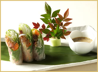 ライスペーパーに青じその葉、(2)の野菜、春雨、(6)のあじ、焼きみそ少々をのせて包む。食べやすく切って器に盛る。残った焼きみそを湯少量で溶かして、たれとして添える。