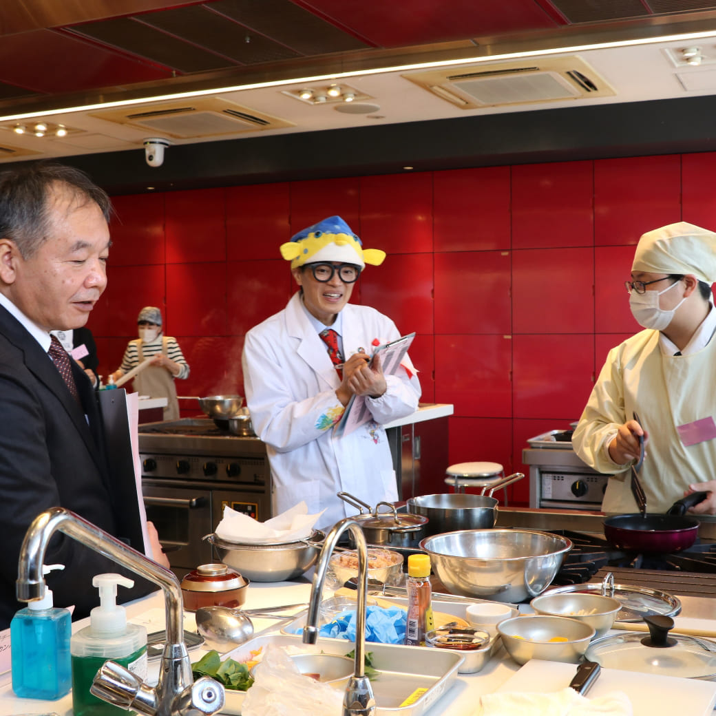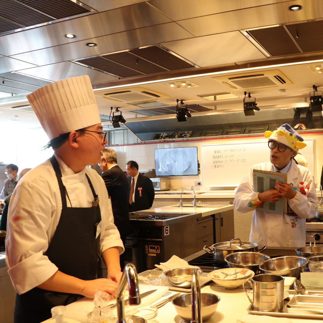 ここに集まったのは、100倍以上の倍率を勝ち抜いてきてきた方々。自分に誇りをもって、そしてこれからも年齢に関係なく、お料理を通して多くの人たちに喜びを与えてください。料理は、自分も楽しみ、喜びを得て、人々にも楽しみと幸せを与えるもの。多くの人に幸せを与えていただきたい。」