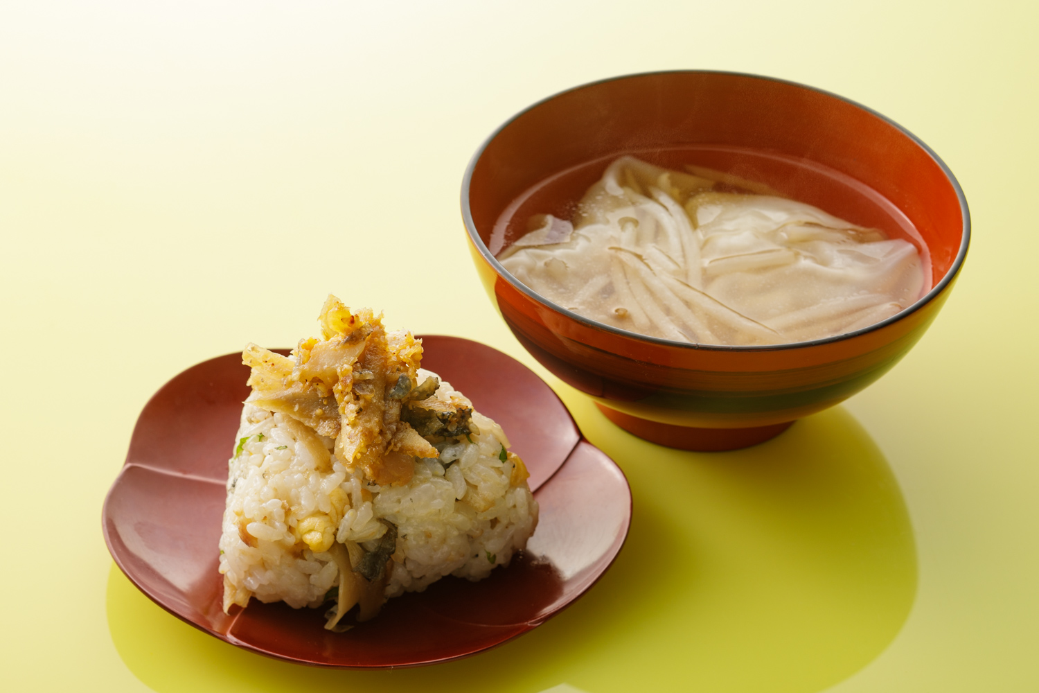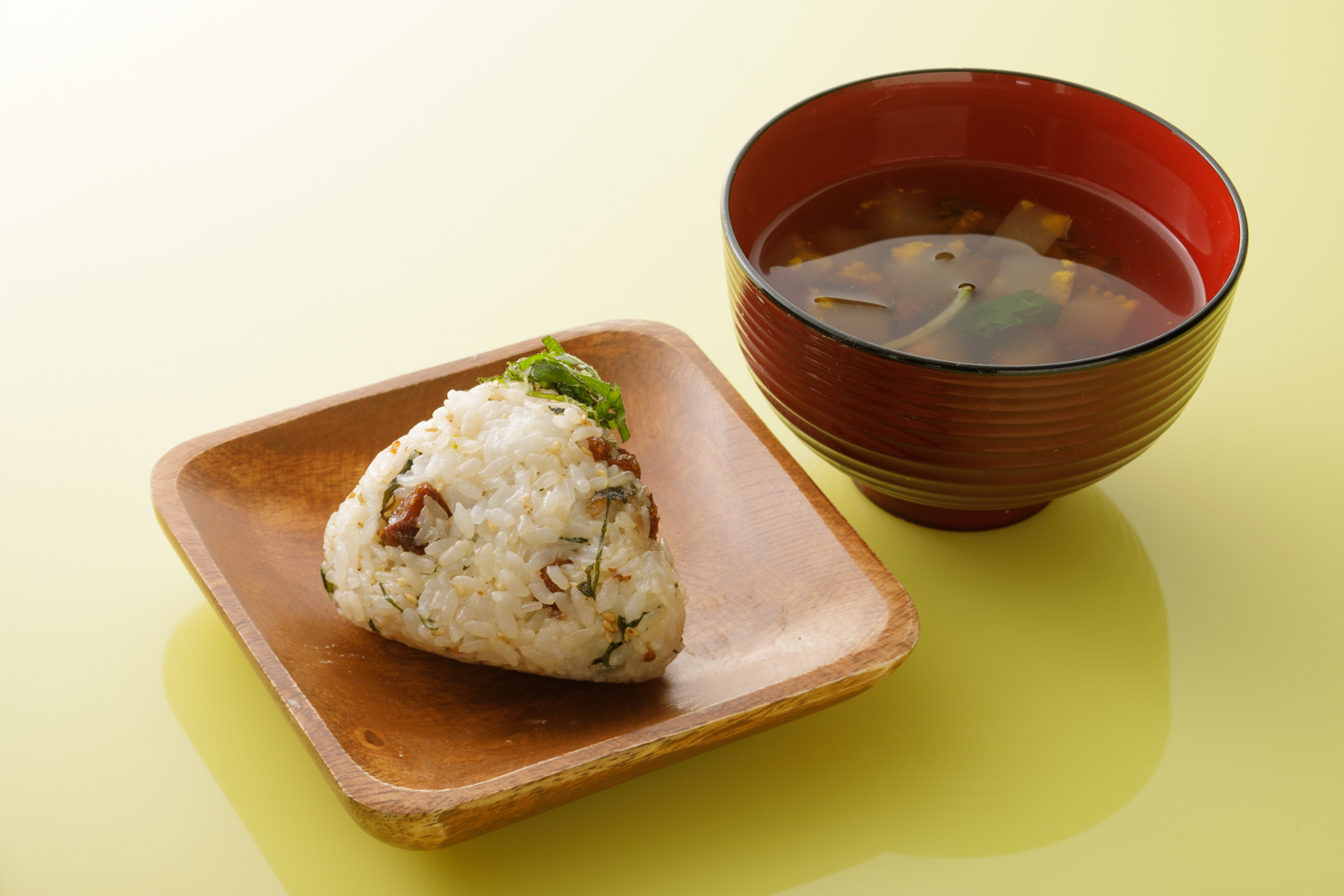 汁物1つとおにぎり1個をセットで作ること。※応募時の写真は汁物とおにぎり、一緒にお撮りください。