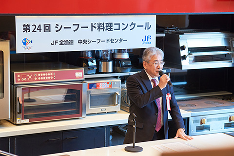約20年前に国の食生活指針を受け、米と魚中心の日本型食生活の定着を図る目的で始まったシーフード料理コンクールは、これまで56,000作品を超えるオリジナルレシピが応募され、食のプロを目指す学生や一般消費者の皆様から様々な場面で楽しめる魚介藻料理が披露されました。この「シーフード料理コンクール」は、国産水産物を使ったお魚料理を競うだけでなく、みなさんの食生活において、お魚をより身近に楽しんでいただくとともに、その美味しさを再発見していただきたいという思いから実施してまいりました。水産物は元来、持続可能(サステナブル)な資源であり、国産水産物を食べることは、SDGs(持続可能な開発目標)にも意識を向ける機会となります。水産物がサステナブルな食であることも含め、毎日の生活の中で美味しいお魚を食べていただく機会が増えるよう願っております。このコンクールに作品を寄せられた多数の皆様に対し、厚く御礼申し上げますとともに、後援・協力団体、審査委員、関係各位に対しまして心より感謝申し上げます。