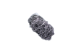 - ① 流水にあてながら、ステンレスウールで横・縦と順にこすります。